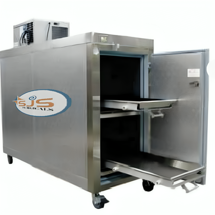 SJS Surgical offers pre-assembled and custom-built mortuary cabinets and walk-in mortuary chambers precisely engineered to match your required specifications. All our units ensure reliable performance, hygienic operation, and efficient dead body storage under controlled conditions. Each model is equipped with an advanced temperature control system featuring a high-contrast digital display for accurate monitoring and regulation.