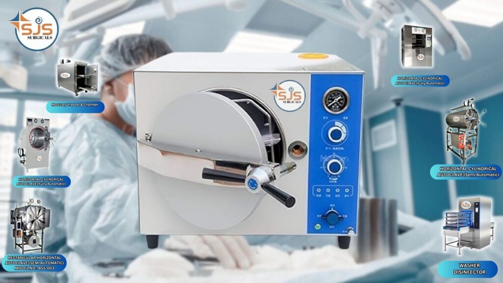 SJS Surgical offers CE-approved bench-top pre and post vacuum autoclaves with automatic cycles, stainless steel seamless chambers, advanced safety features, and programmable controls—ideal for reliable sterilization of glassware and plasticware in labs and clinics.